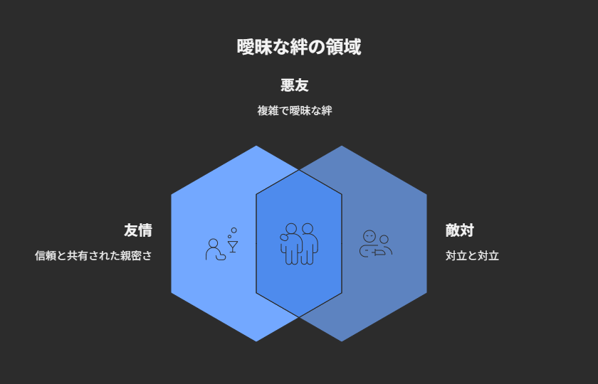 この“悪友”という表現には、互いを完全には理解しないまま、