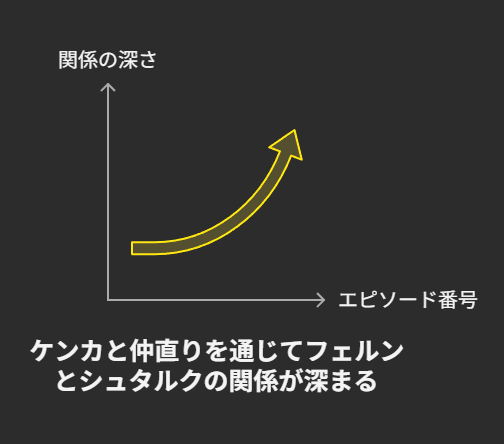 この一件を経てシュタルクは、フェルンとの関係に対して「気を遣う」ようになるんですね。