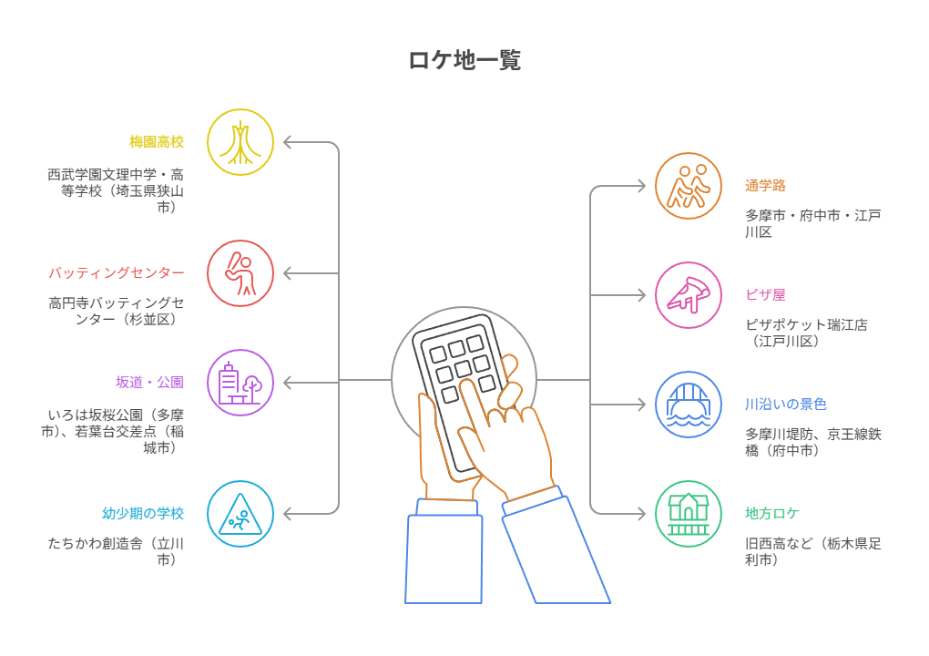 東京・多摩市・埼玉・栃木など、各地に広がる“青春の風景”を、聖地巡礼の参考としてどうぞ。