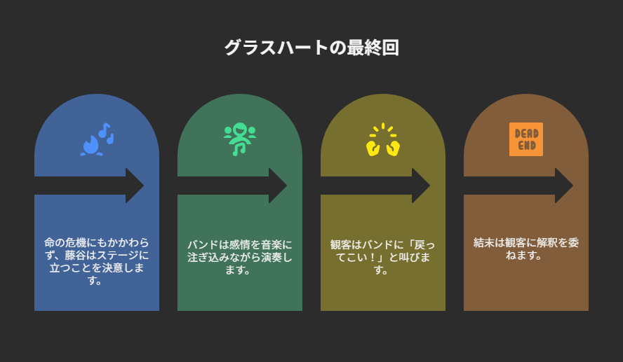 音楽を“信じたい”と願った若者たちが、過去の傷や現実と向き合いながら、“今”という舞台に立ち続ける──それが『グラスハート』という物語の核でした。