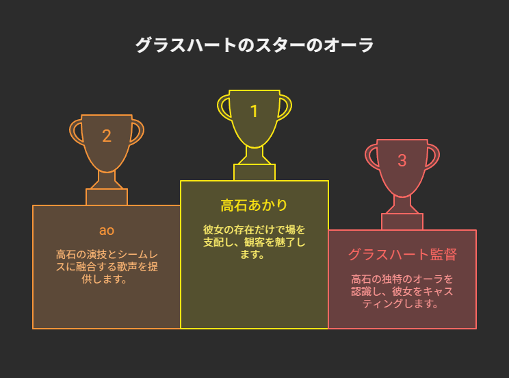 『グラスハート』のオーディションで彼女がステージに立った瞬間、会場の空気が変わったといいます。監督は「光の当たり方が違って見えた」とコメントし、ほぼ即決でキャスティングが決まったとのこと。求められていたのは、単なる歌唱力や演技力ではなく、“そこに立つだけで場を支配する”資質でした。