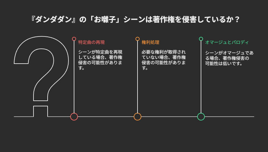 今回の『ダンダダン』“お囃子”シーンについて、現時点の情報から推測できる争点は以下の通りです。