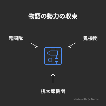 - 桃太郎機関:鬼を人間社会の脅威と断じ、討伐を使命とする。
