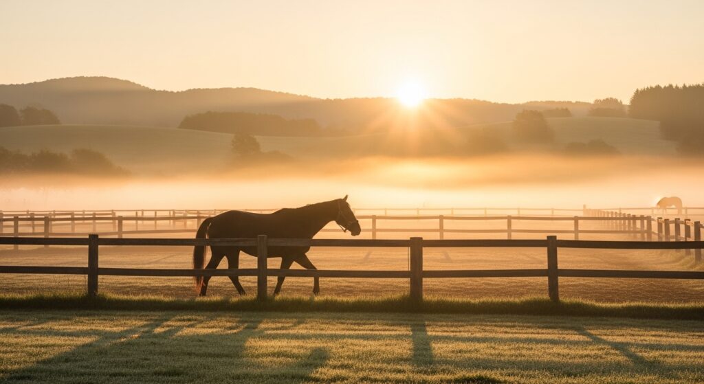 雄大な自然、朝霧の立つ草原、そして蹄の音。
