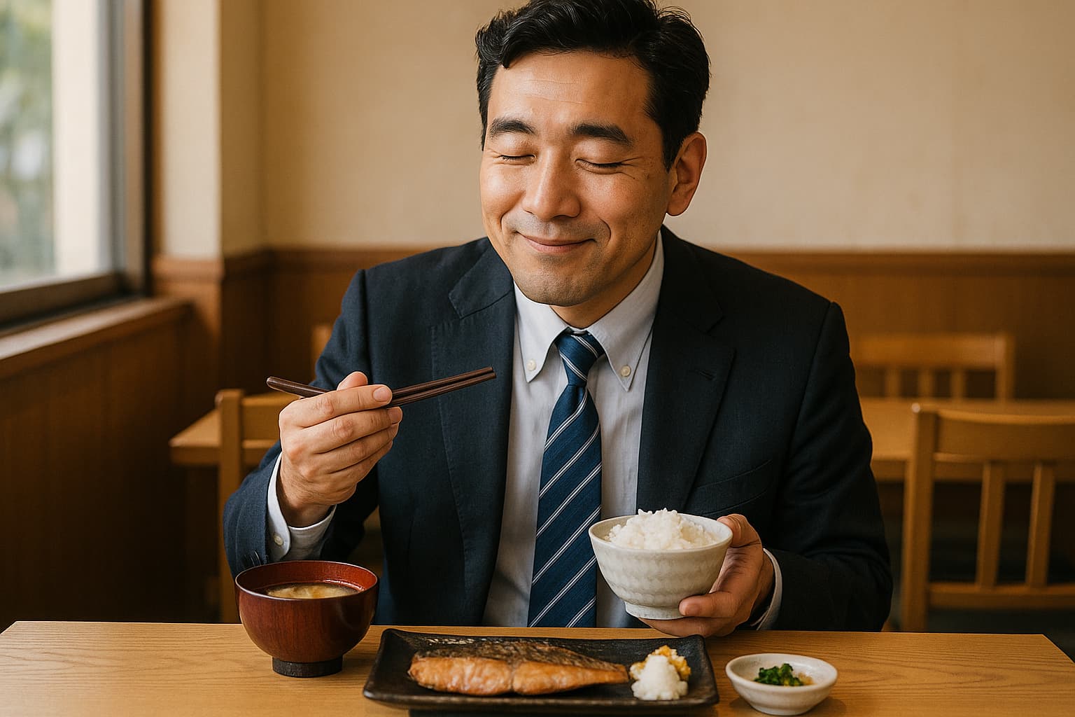 ・静かな定食屋で、何も考えずにただ味噌汁をすする時間の幸福感