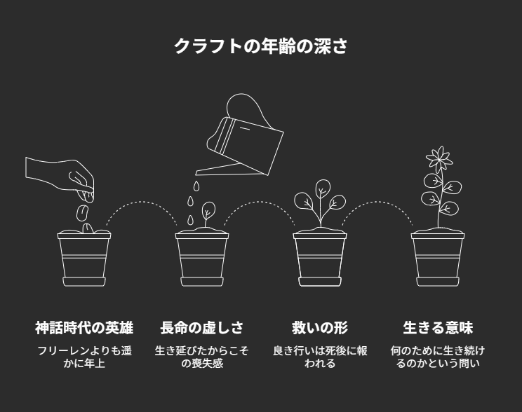 けれども、クラフトが語る過去には、年齢を誇るようなそぶりはありません。